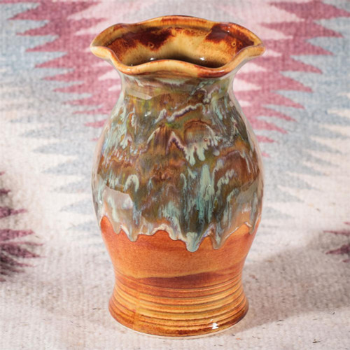This stoneware pottery adds a splash of blue and deep brown into your southwest home! Because these pieces are handmade, each piece has a unique color design and will vary from the picture. Each piece is made to order, please allow for 1-2 weeks for shipping. Measures approximately 9.5x5x5 inches.